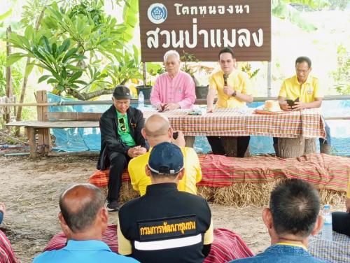 วันที่ 5 มิถุนายน 2568 นางทรัพย์สิน โพธิ์ขาว พัฒนาการจังหวัดศรีสะเกษ มอบหมายให้ นางสาวธนพร ขจิตเวทย์ ผู้อำนวยการกลุ่มงานสารสนเทศการพัฒนาชุมชน พร้อมด้วยนางสาวนิตยา คำโสภา ผู้ช่วยผู้อำนวยการกลุ่มงานส่งเสริมการพัฒนาชุมชน ร่วมกิจกรรม “หิ้วปิ่นโตเอามื้อสามัคคี” ณ แปลงศูนย์เรียนรู้โคก หนอง นา สวนป่าแมลง ตำบลหนองไฮ อำเภออุทุมพรพิสัย โดยมีนายอำเภออุทุมพรพิสัย นายนิวัติ น้อยผาง อดีตเคยดำรงตำแหน่ง รองอธิบดีกรมการพัฒนาชุมชน นายทิวา รุ่งแก้ว ผู้ทรงคุณวุฒิ พัฒนาการอำเภออุทุมพรพิสัย คณะกรรมการเครือข่าย โคก หนอง นา ระดับจังหวัด ร่วมกิจกรรมเพื่อเสริมสร้างพลังเครือข่ายให้เกิดความเข้มแข็ง เกิดการแลกเปลี่ยนเรียนรู้ร่วมกัน ระหว่างคณะทำงานเครือข่าย โคก หนอง นา ระดับจังหวัด พร้อมวางแผนขับเคลื่อนการน้อมนำแนวพระราชดำริของสมเด็จพระกนิษฐาธิราชเจ้า กรมสมเด็จพระเทพรัตนราชสุดาฯ สยามบรมราชกุมารี สู่การปฏิบัติการปลูกผักสวนครัว เพื่อสร้างความมั่นคงทางอาหาร ประจำปีงบประมาณ พ.ศ. 2568 ภายใต้แนวคิด “ปรับเปลี่ยนดี ชีวีมีสุข” (Change for 5G) กรอบแนวคิดการเปลี่ยนแปลงให้เกิดสิ่งที่ดีขึ้น “ปรับเปลี่ยนดี ชีวีมีสุข” (Change For 5G) ถอดองค์ความรู้จากการขับเคลื่อนศูนย์เรียนรู้การพัฒนาคุณภาพชีวิตตามหลักทฤษฎีใหม่ประยุกต์สู่โคกหนองนา และเพื่อเป็นการกระตุ้นให้เกิดการขับเคลื่อนการดำเนินกิจกรรมอย่างต่อเนื่อง และสามารถทำให้เป็นศูนย์เรียนรู้ต้นแบบในชุมชน และหมู่บ้านตำบลใกล้เคียงได้อย่างยั่งยืน จากนั้นช่วงบ่ายมีการดำเนินกิจกรรม การปลูกต้นลำดวน ต้นกาแฟ และกิจกรรมเอามื้อเก็บถั่วพร้าคลุมดิน